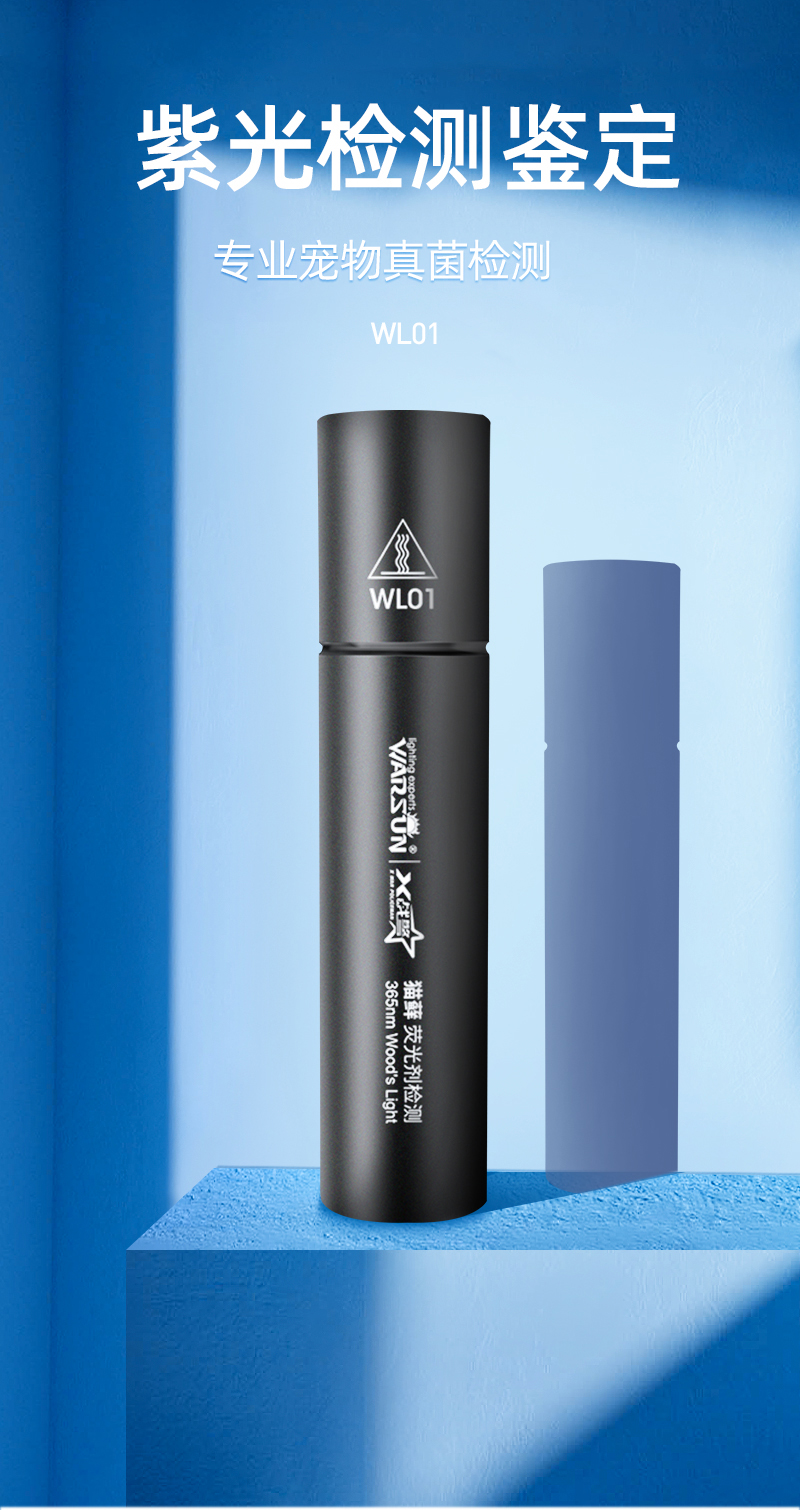 - 商品名称:沃尔森 Warsun WL01 伍德氏灯照猫藓灯宠物紫光手电筒紫外线真菌荧光剂检测猫尿廯灯紫光灯