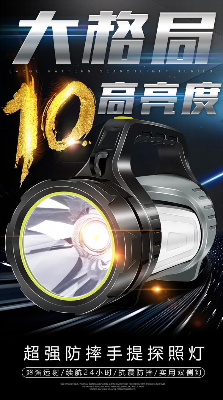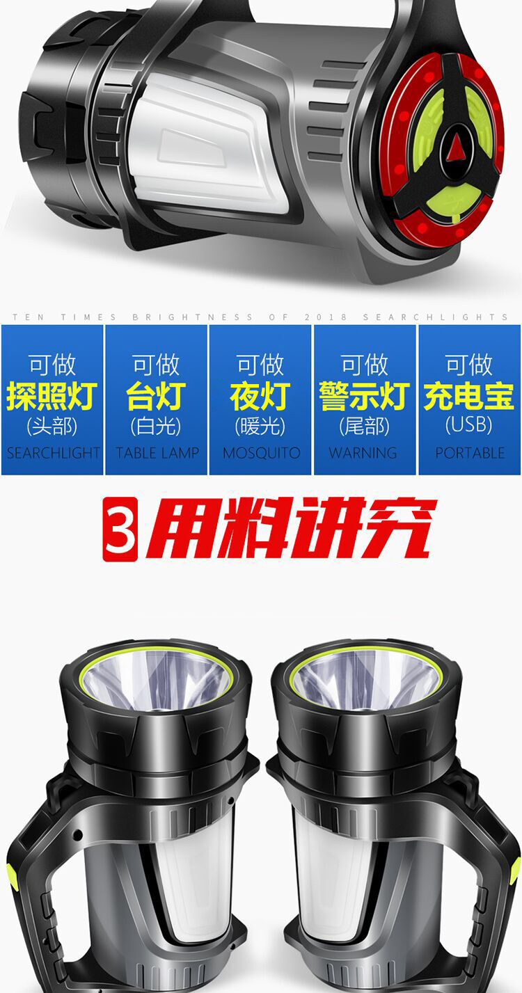 - 商品名称:沃尔森 Warsun H881手电筒双侧灯高配版LED强光手电筒充电超亮多功能手提探照灯家用矿灯