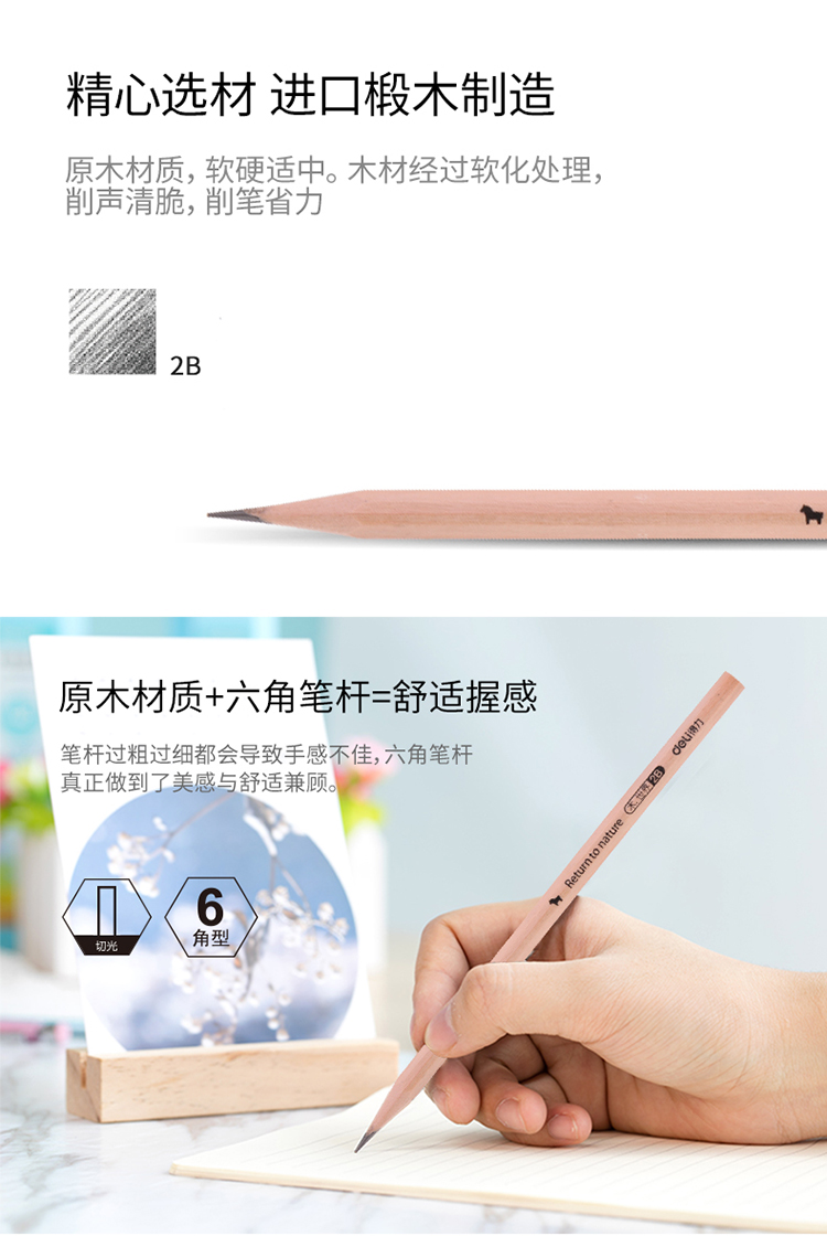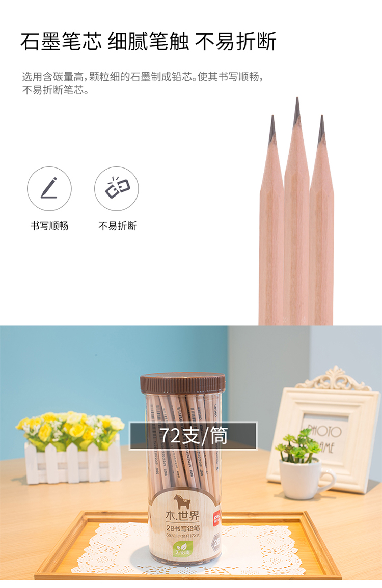 - 商品名称:得力(deli)S951木世界系列原木2B铅笔 素描绘图学生铅笔