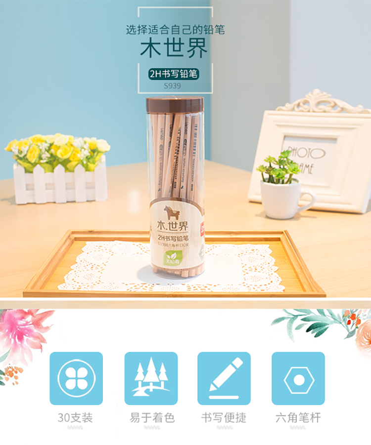 - 商品名称:得力(deli) S939 得力(deli)木世界系列2H六角笔杆书写绘画素描铅笔