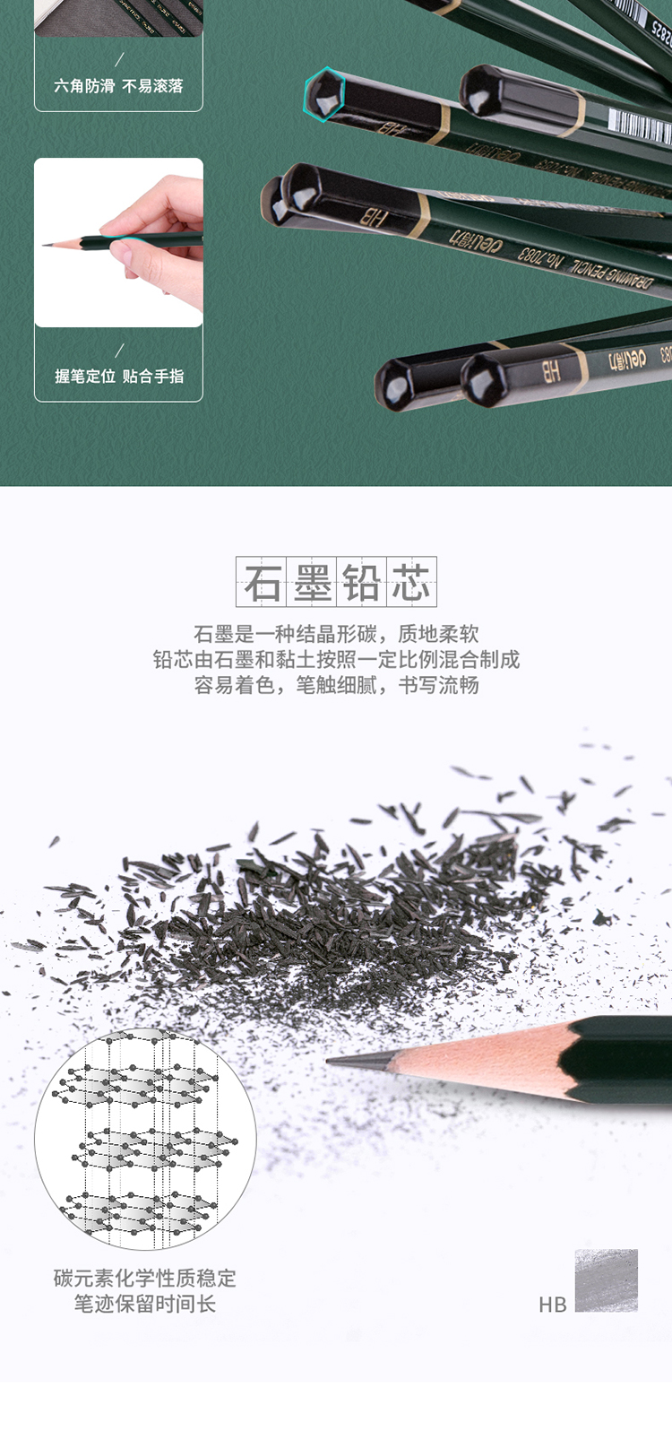 - 商品名称:得力 (deli) 7083 HB 六角绘图铅笔