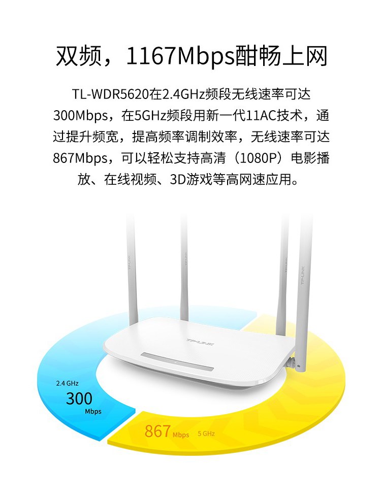 - 商品名称:TP-LINK TL-WDR5620 1200M 双频智能无线路由器(计价单位:台)