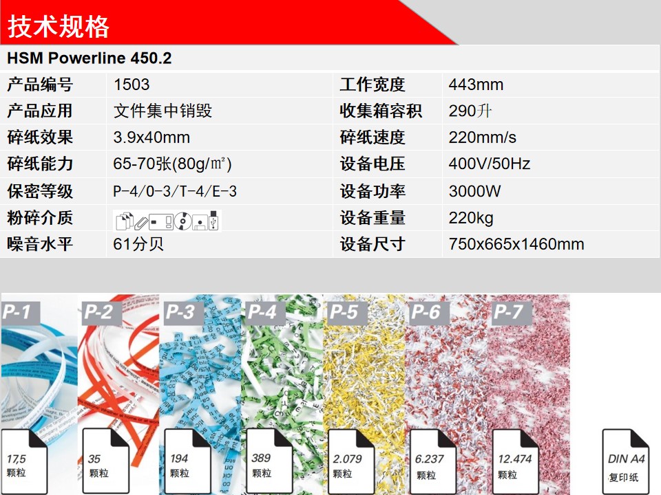 商品名称:赫斯密(HSM) Powerline 450.2 带进料斗大型碎纸机 可碎纸团、光盘、U盘 白色