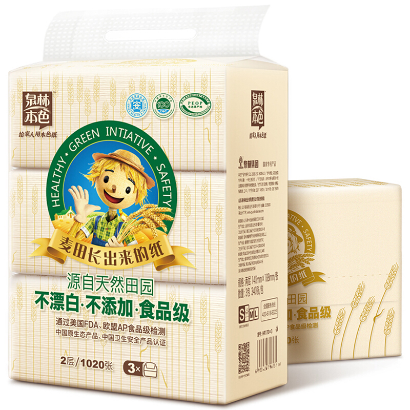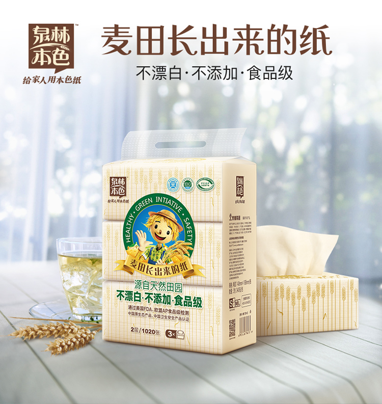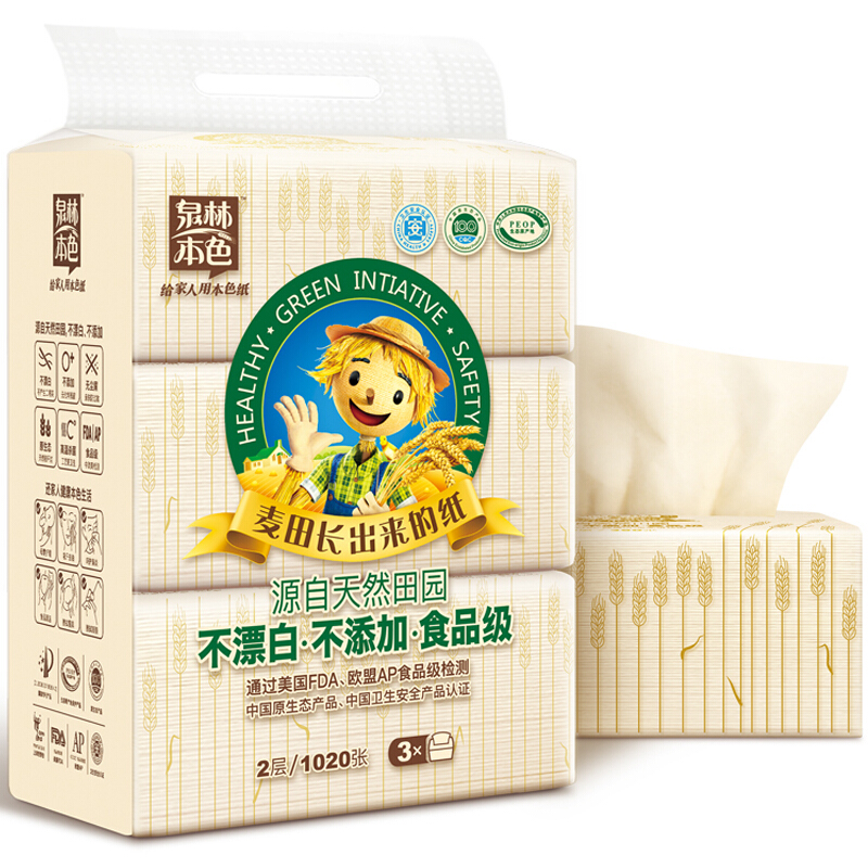 - 商品名称:泉林本色HR170*3 抽纸 2层170抽*3包(天然秸秆原生浆环保健康本色卫生面巾抽纸)