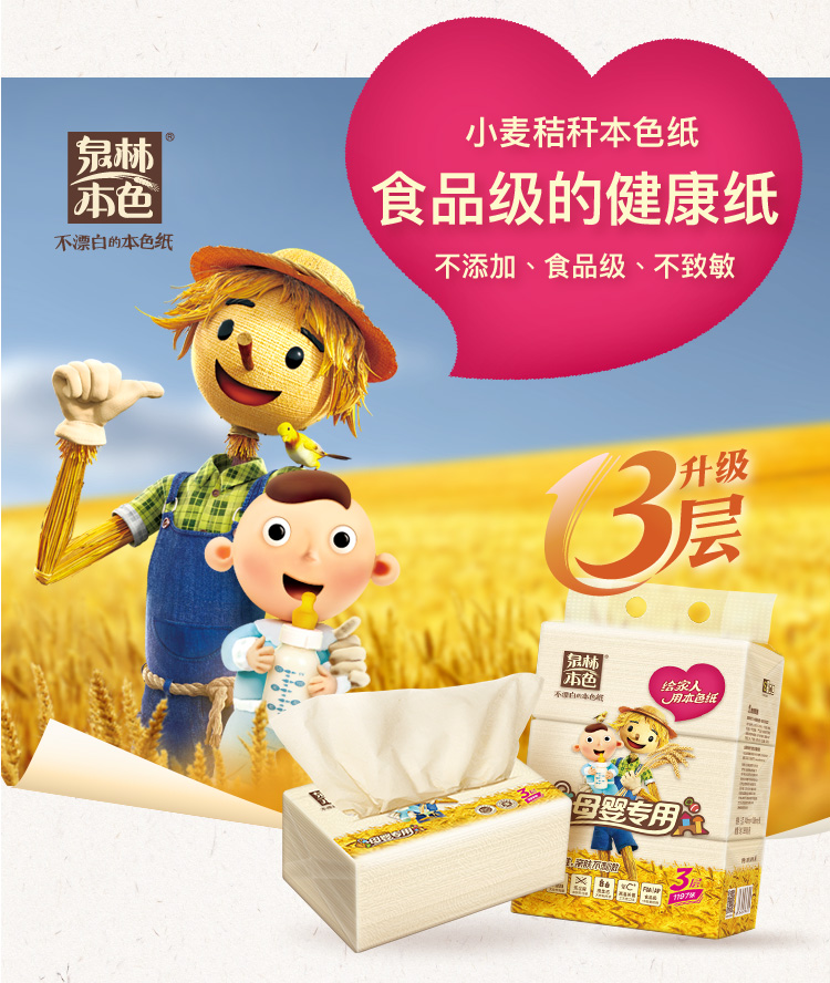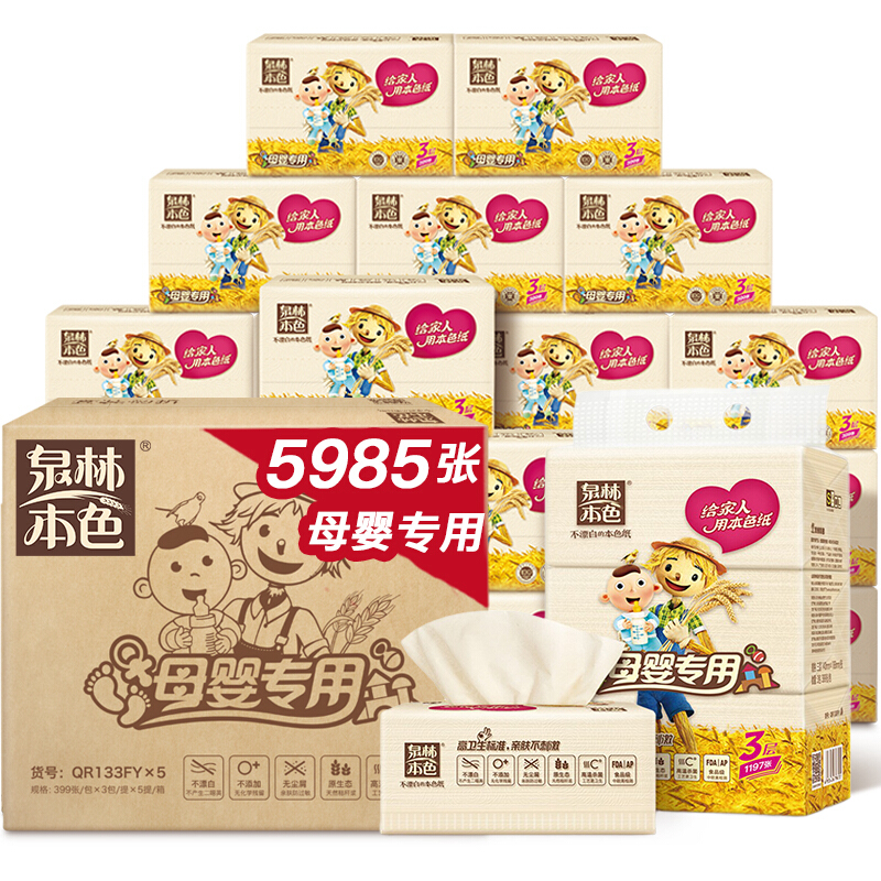 - 商品名称:泉林本色QR133FY*5 健康母婴系列 3层133抽*15软包(卫生安全认证 食品级检测 本色无添加无漂白)面巾纸整箱销售