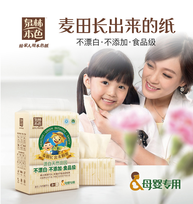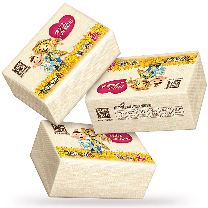 商品名称:泉林本色QR133FY 抽纸 不漂白母婴3层133抽软抽*3包(无二噁英残留 本色卫生面巾抽纸巾)