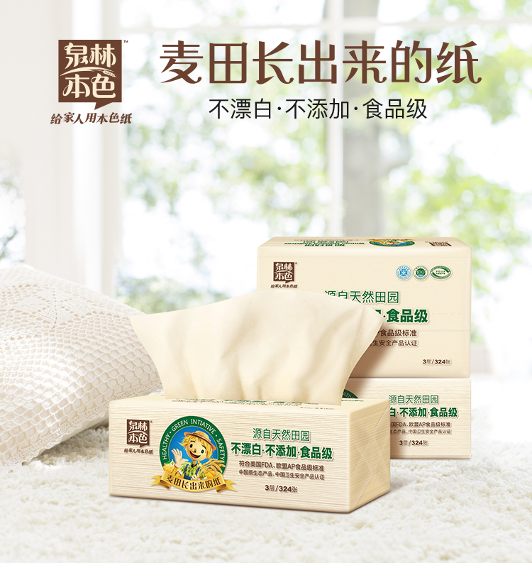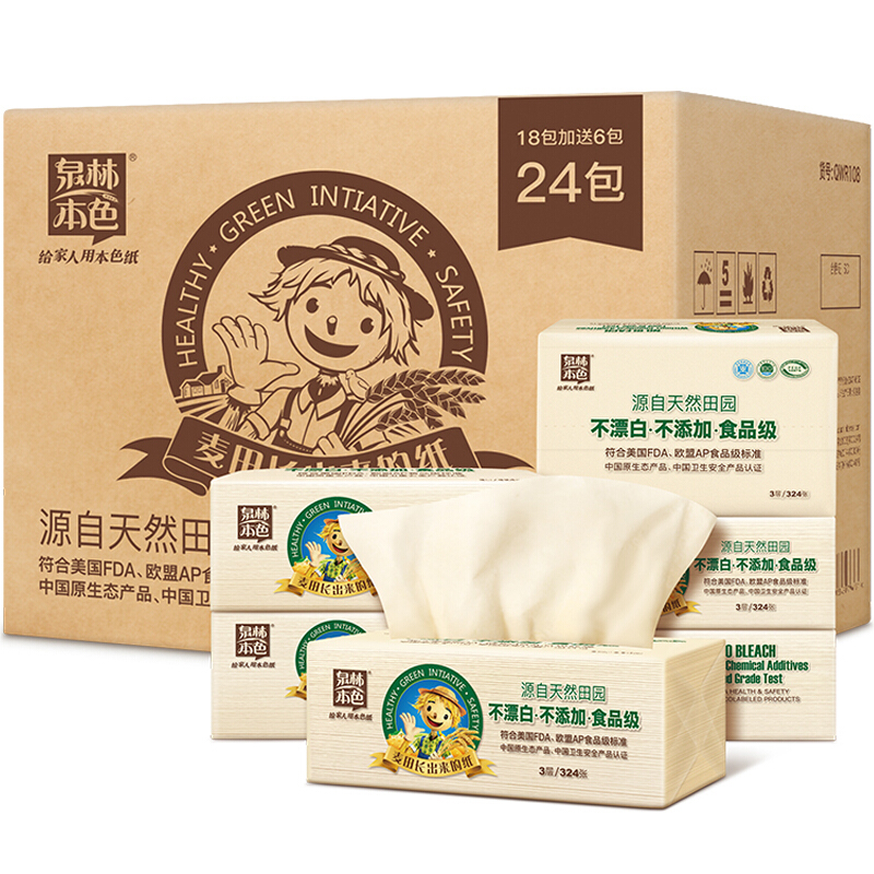 - 商品名称:泉林本色QWR108 抽纸 不漂白环保3层108抽软抽*24包(精选原生浆 本色卫生面巾抽纸巾)整箱销售