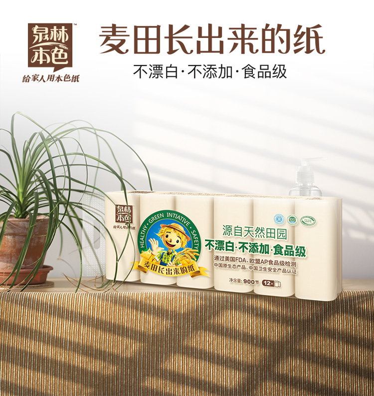 商品名称:泉林本色HP15262 卷纸 3层75节12卷(健康本色扁卷卫生纸整提900节)