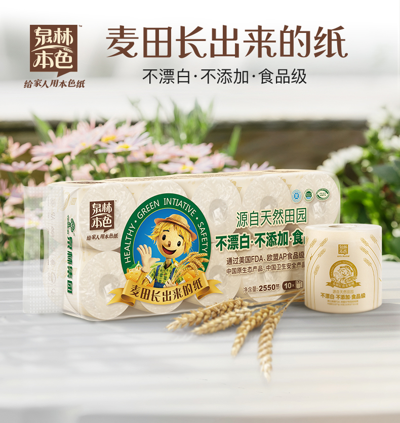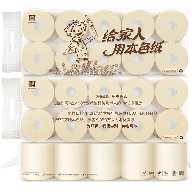 - 商品名称:泉林本色HK130*3Z 空芯卷纸 3层255节*30卷(天然秸秆原生浆环保健康本色卫生厕卷纸)