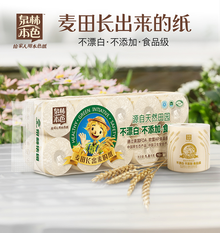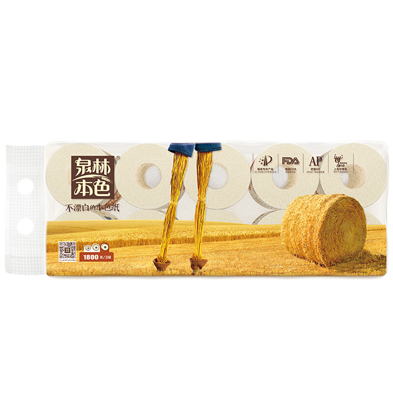 - 商品名称:泉林本色BK180卷纸 不漂白3层180克*10卷(高大克重易溶环保原生浆不漂白本色卫生厕卷纸巾)