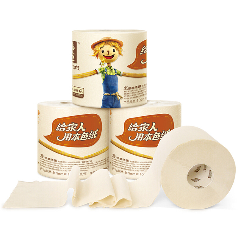 泉林本色BK160N 卷纸 3层160g*24卷(耐用高节数易溶不堵塞马桶不漂白本色卫生厕卷纸整箱销售)