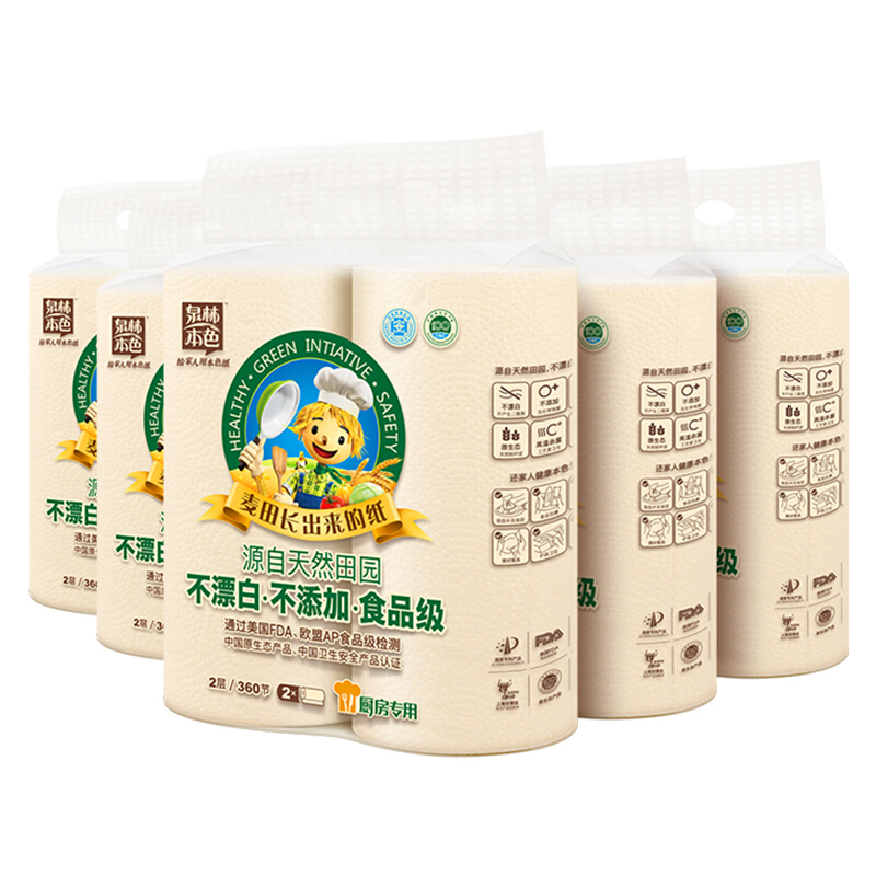- 商品名称:泉林本色CF300*5Z 厨房用纸 180段/卷*10卷(食品级吸油吸水清洁去污不漂白本色卫生厨房专用卷纸)