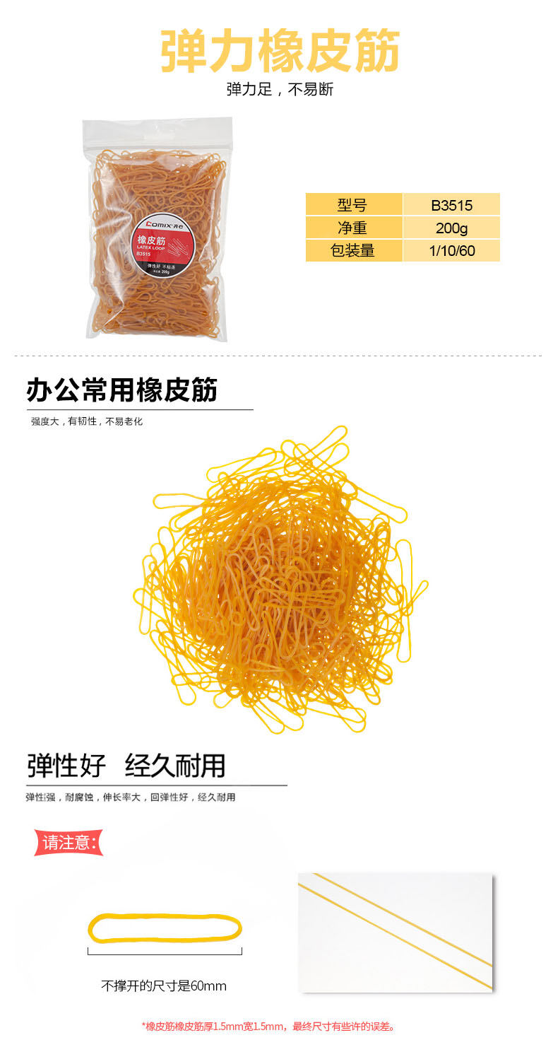 - 商品名称:齐心橡皮筋 B3515 200g 袋装 黄色
