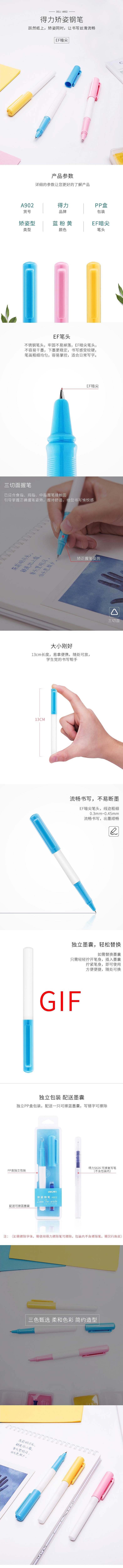 - 商品名称:得力A902学生矫姿钢笔(可擦纯蓝/笔壳浅粉)(1支/盒)