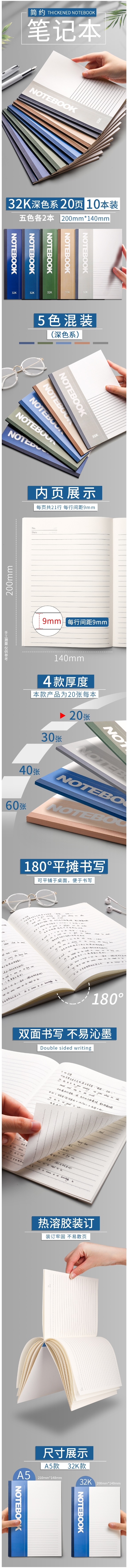 商品名称:国产 金值JK0180 10装本深色32k软面抄横线笔记本子记事本商务练习简约ins风大学生用课堂工作软抄加厚日记作业本办公薄款