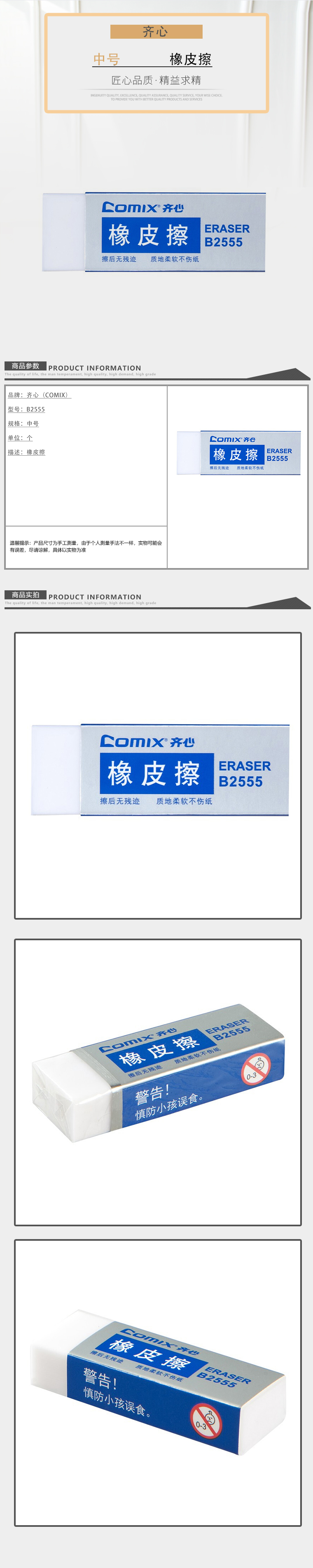- 商品名称:齐心(Comix) B2555 中号 橡皮擦(单位:个)