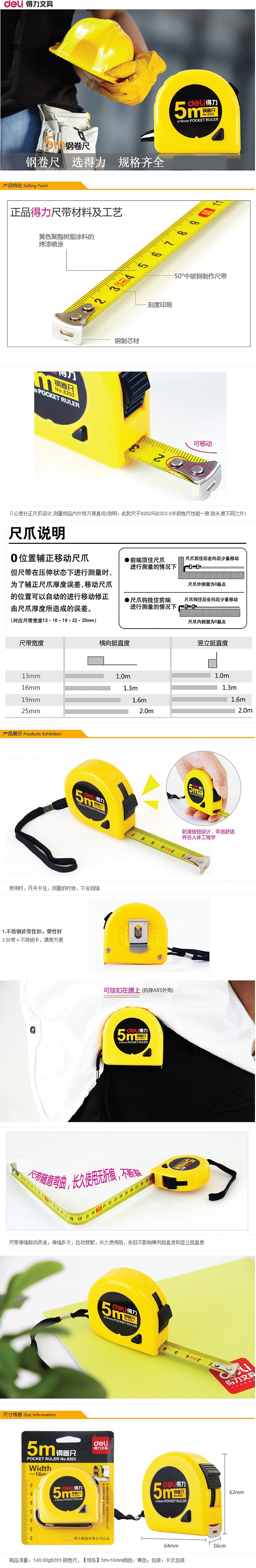 - 商品名称:得力 8203 钢卷尺 (单位:把) 黄
