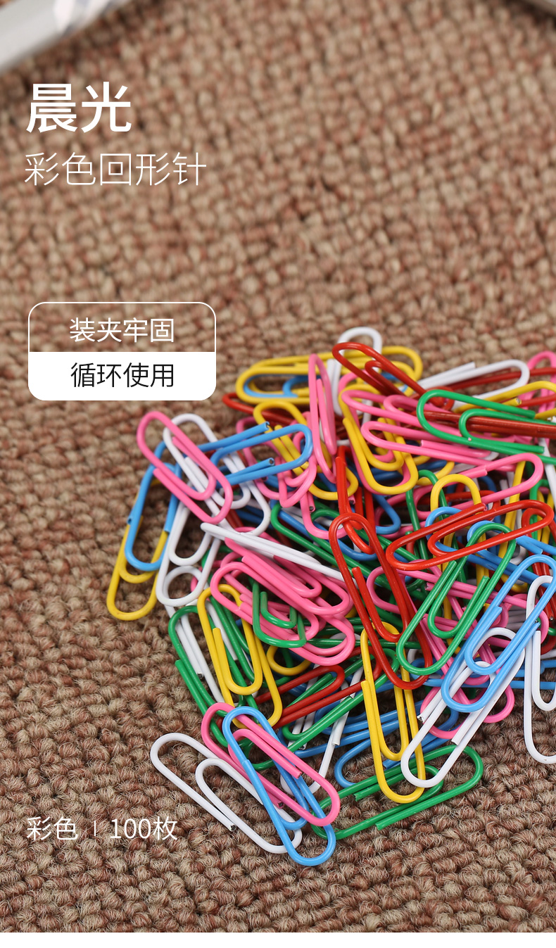 - 商品名称:晨光(M&G) ABSN2661彩色防锈回形针 金属曲别针 办公用品 100枚/袋