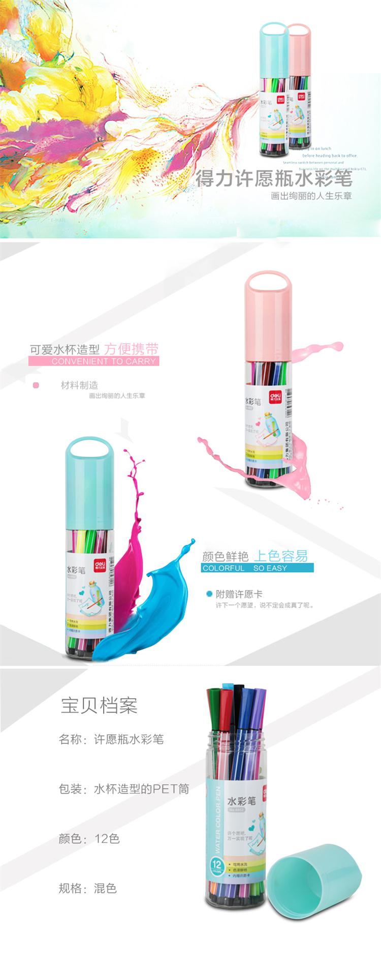 - 商品名称:得力 6952 12色水彩笔 12支/筒