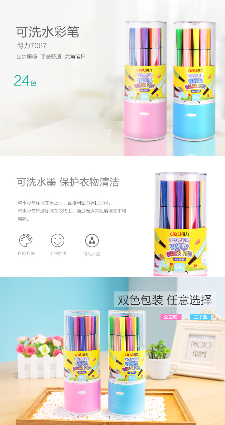 - 商品名称:得力(deli) 7067 绚丽多彩可洗水彩笔/绘画笔 24色/筒 包装颜色随机