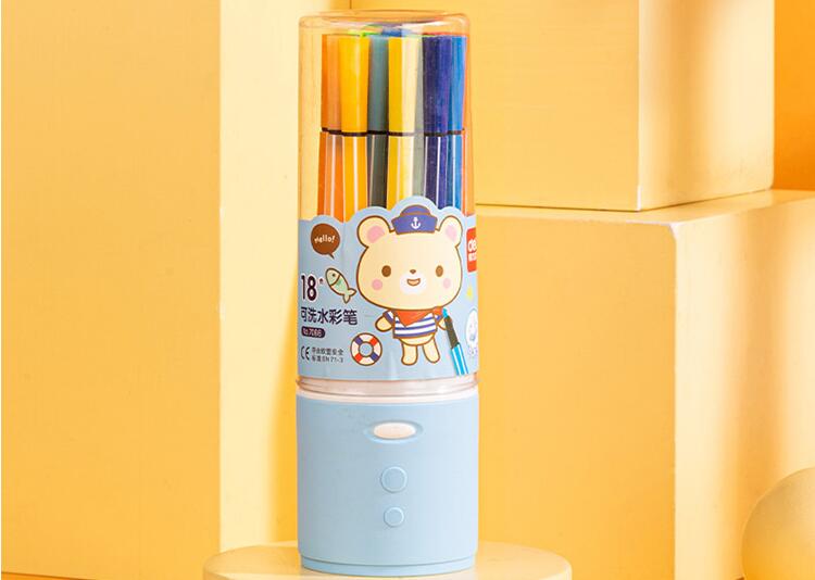 商品名称:得力(deli)六角细杆水彩笔 儿童可水洗创作画笔 学生绘画彩虹筒 18色/筒 蓝
