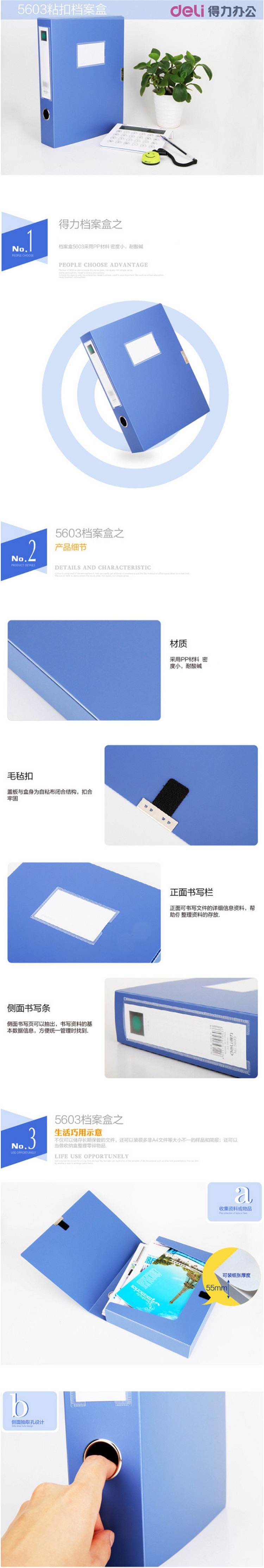 - 商品名称:得力 5603 55mm加厚大容量档案盒 单位:只 蓝