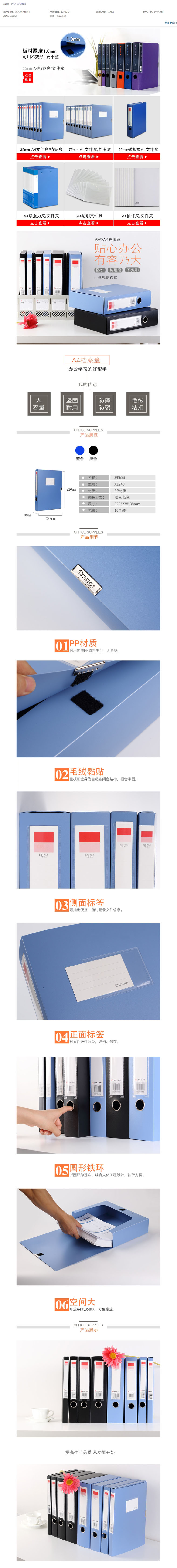商品名称:齐心 A1248 档案盒 A4 35MM 蓝 (18个/箱)(计价单位:个)