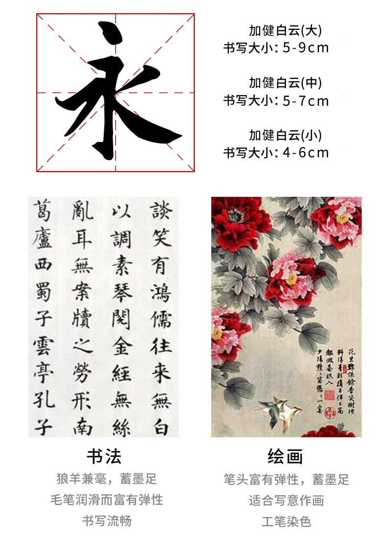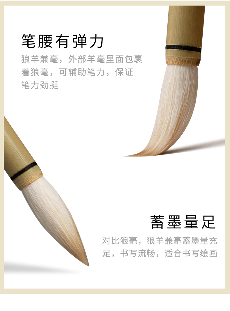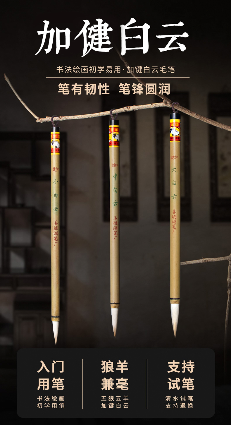 - 商品名称:善琏湖笔厂双羊牌白云毛笔兼毫加健羊毫入门书法毛笔套装文房四宝大中小号国画笔小楷笔湖州中白云毛笔 出锋:2.6cm