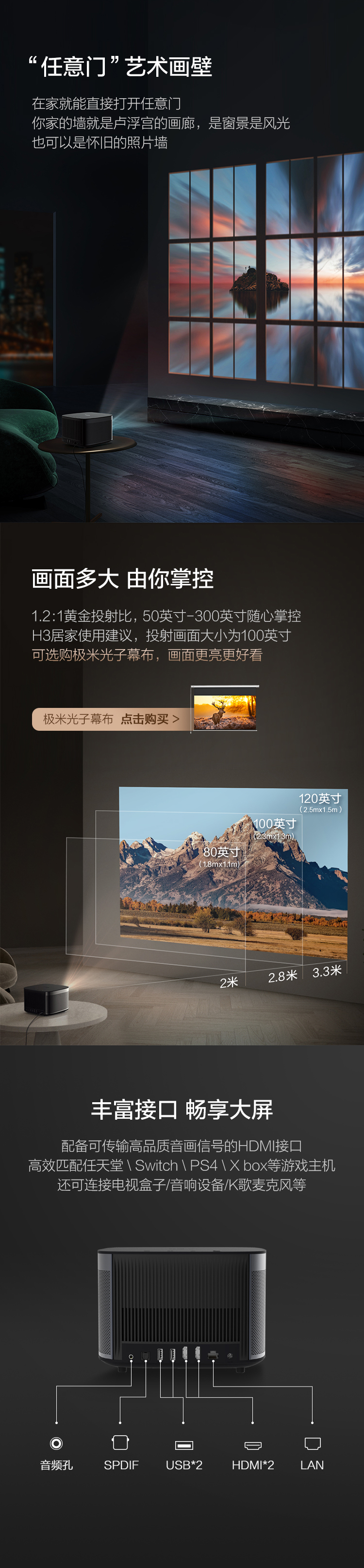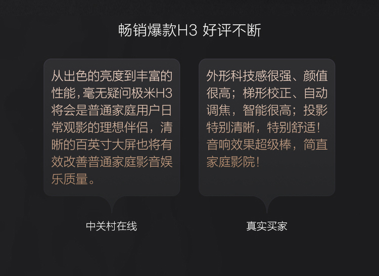 - 商品名称:极米(XGIMI)H3 投影仪家用 投影机办公 智能家庭影院(口碑爆品推荐 哈曼卡顿原装音响 全自动梯形校正)