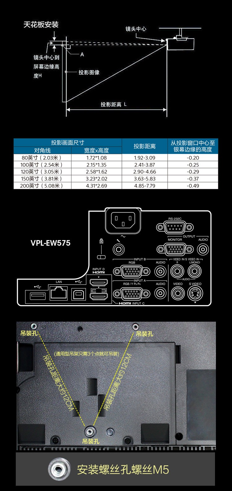- 商品名称:索尼(SONY)EW575 投影仪 办公高清宽屏投影机(4300流明内置扬声器) 官方标配+英微120英寸ZBL电动拉线幕+上门安装 1