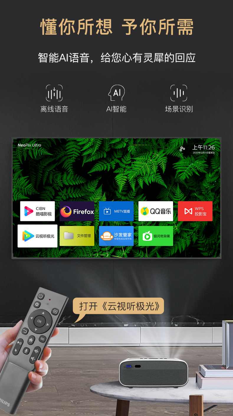 飞利浦 NeoPix EASY2+ NeoPix ULTRA 投影仪家用 4K全高清 1080P办公 手机无线电视卧室家庭投影机