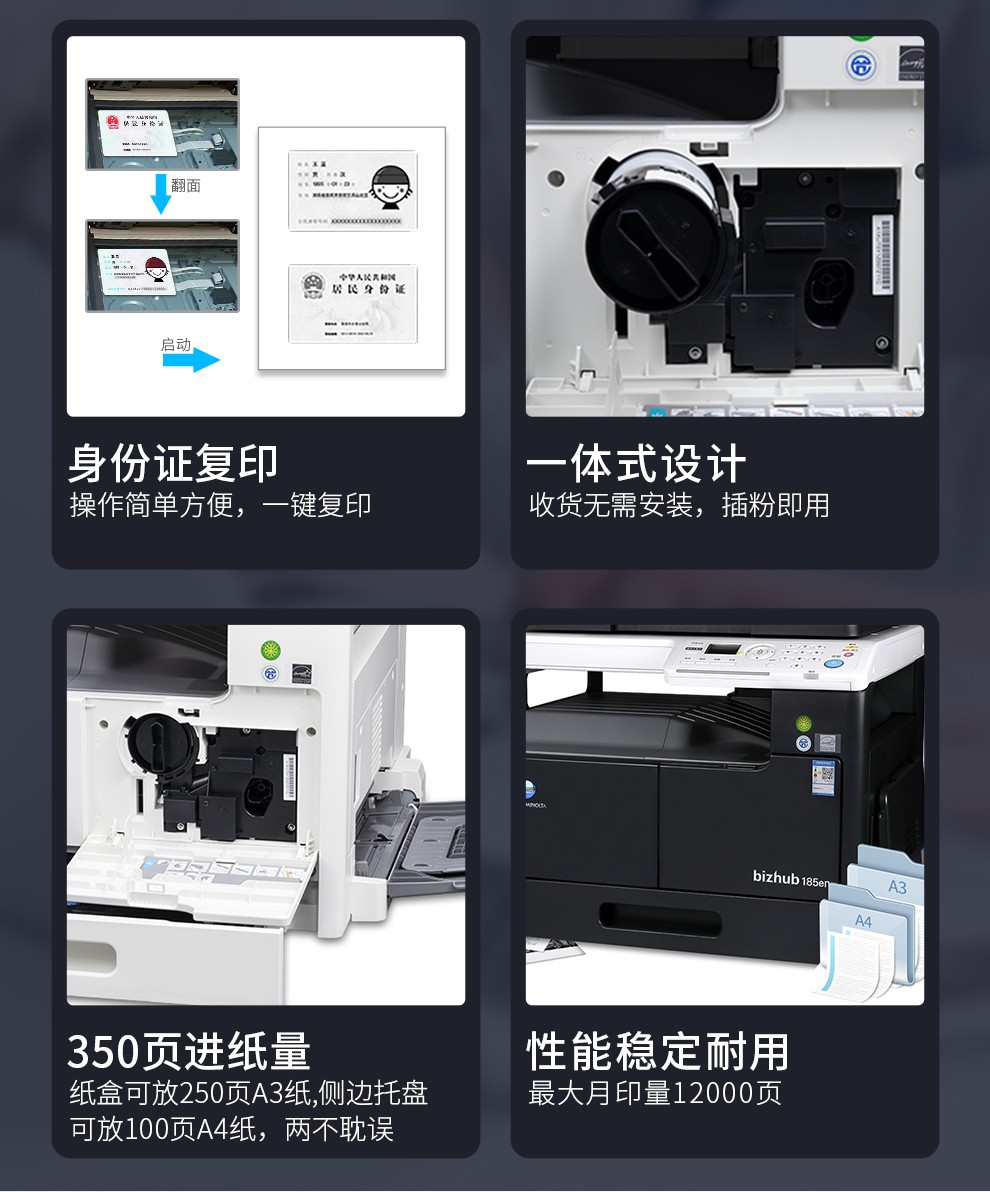 - 商品名称:柯尼卡美能达185e/205i a3激光打印机复印机扫描机一体机a4黑白6180e办公大型商用复合机 205i尊享版(双面输稿器+双面打印+网络共享)