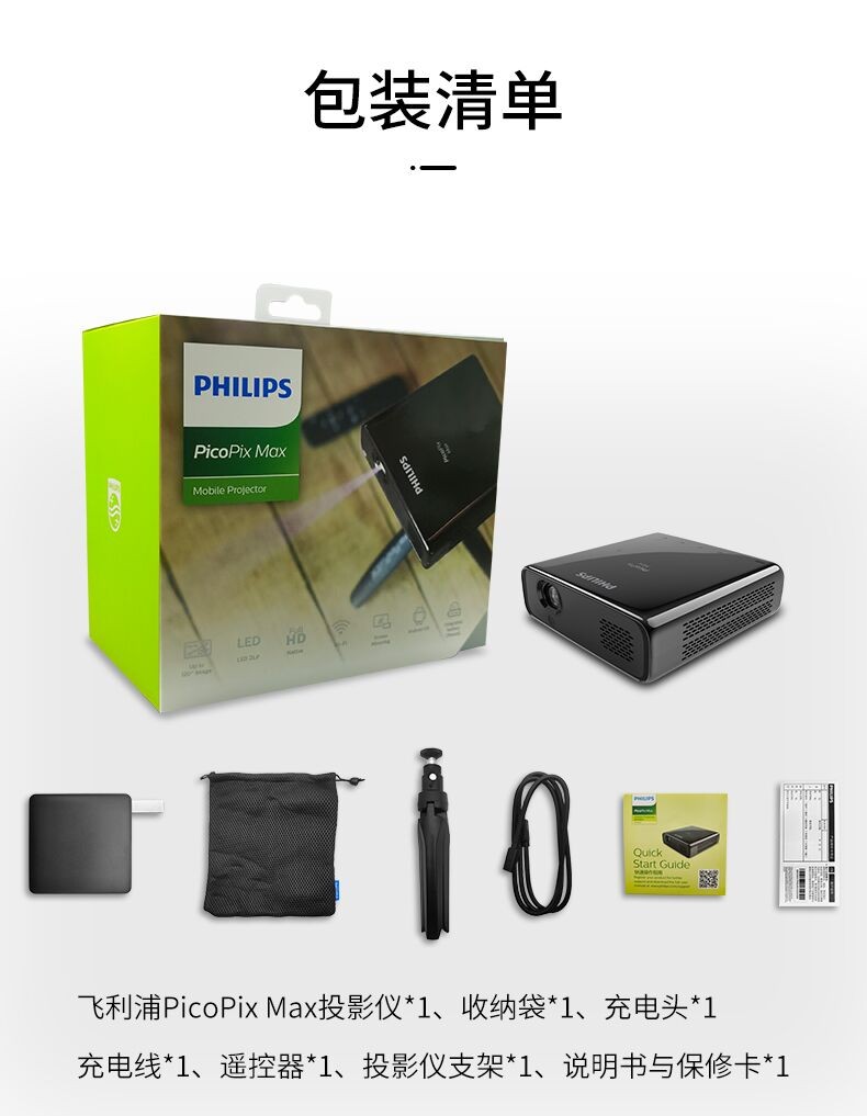 飞利浦 PicoPix Max 投影仪家用 4k全高清1080P投影机 小型便携手机无线家庭投影一体机