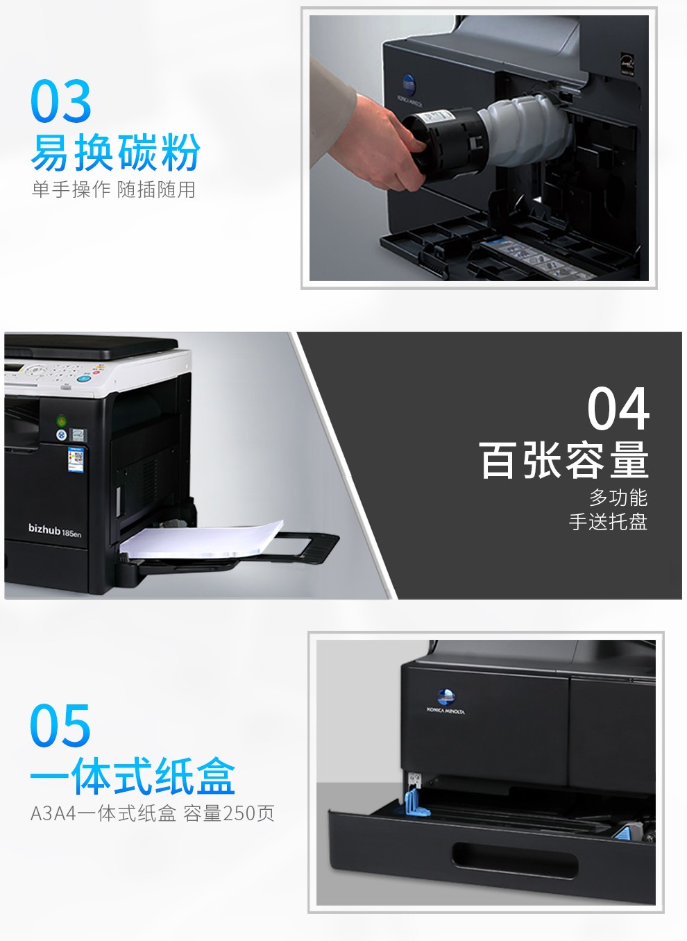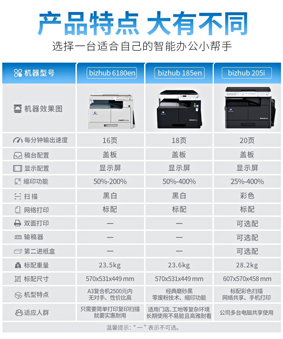 商品名称:柯尼卡美能达185e/205i a3激光打印机复印机扫描机一体机a4黑白6180e办公大型商用复合机 185en标配(A3A4 网络打印/复印/扫描)