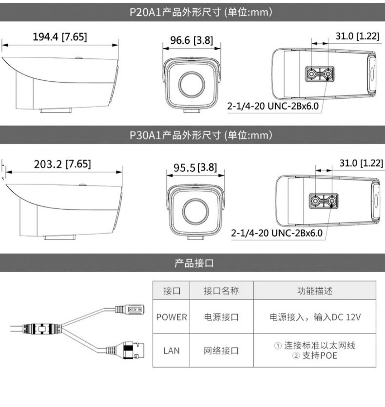 商品名称:大华dahua DH-P20A1监控摄像头200万/300万室外poe供电网络监控器摄像机户外高清夜视枪机摄像头商用 (200万双灯红外版) 3.6MM+支架