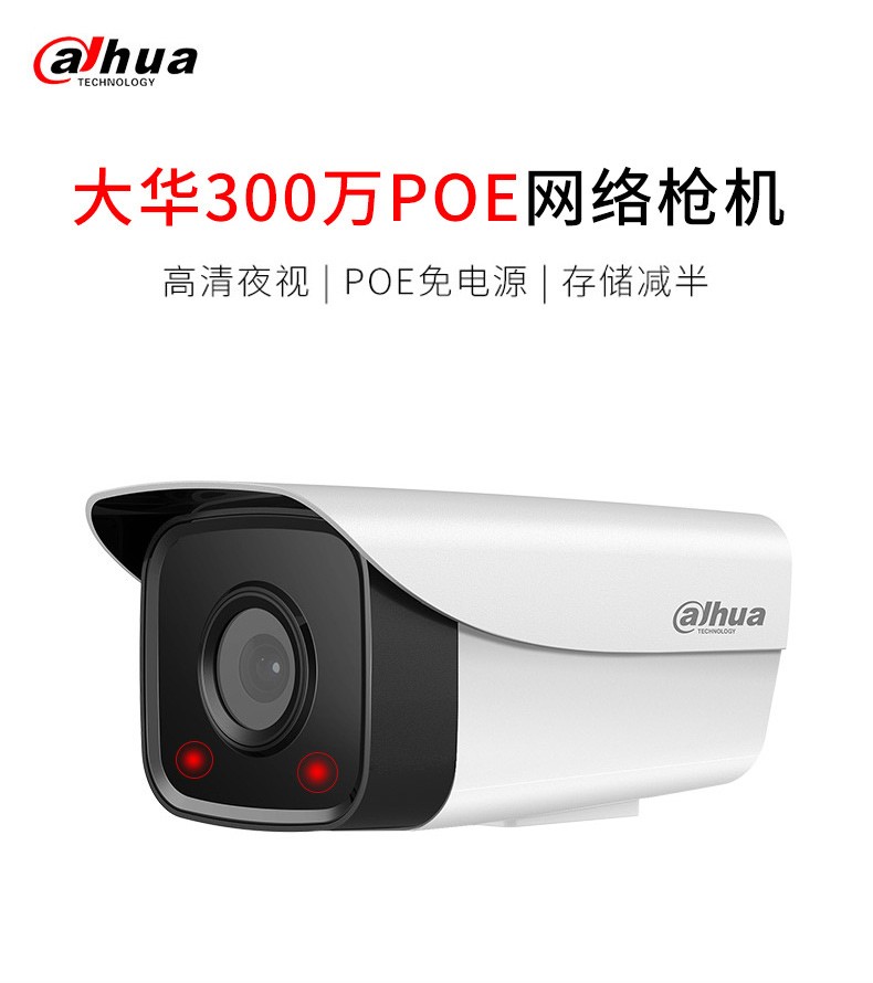 大华dahua DH-P30A1监控摄像头200万/300万室外poe供电网络监控器摄像机户外高清夜视枪机摄像头商用 (300万双灯拾音版) 3.6MM+支架