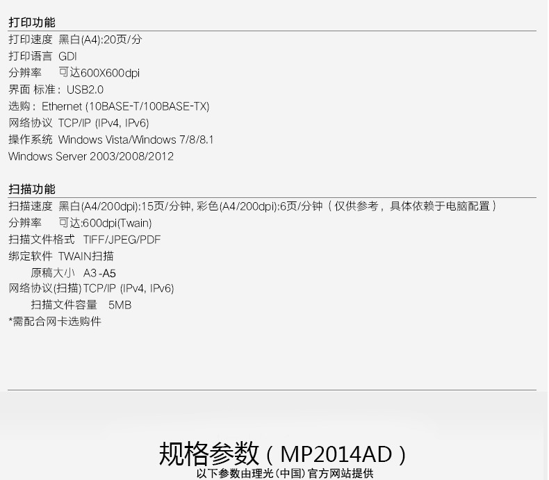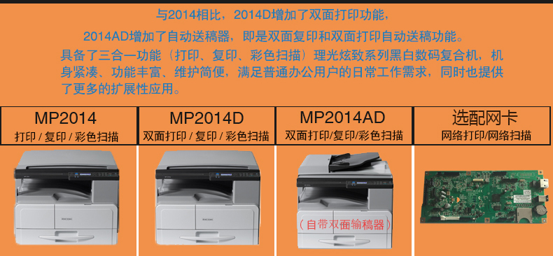 理光(Ricoh)MP2014/D/ADN黑白激光A3复印机一体机A3A4复合机复印机打印办公扫描 MP2014AD(自动双面打印复印扫描+批量复印) 官方标配