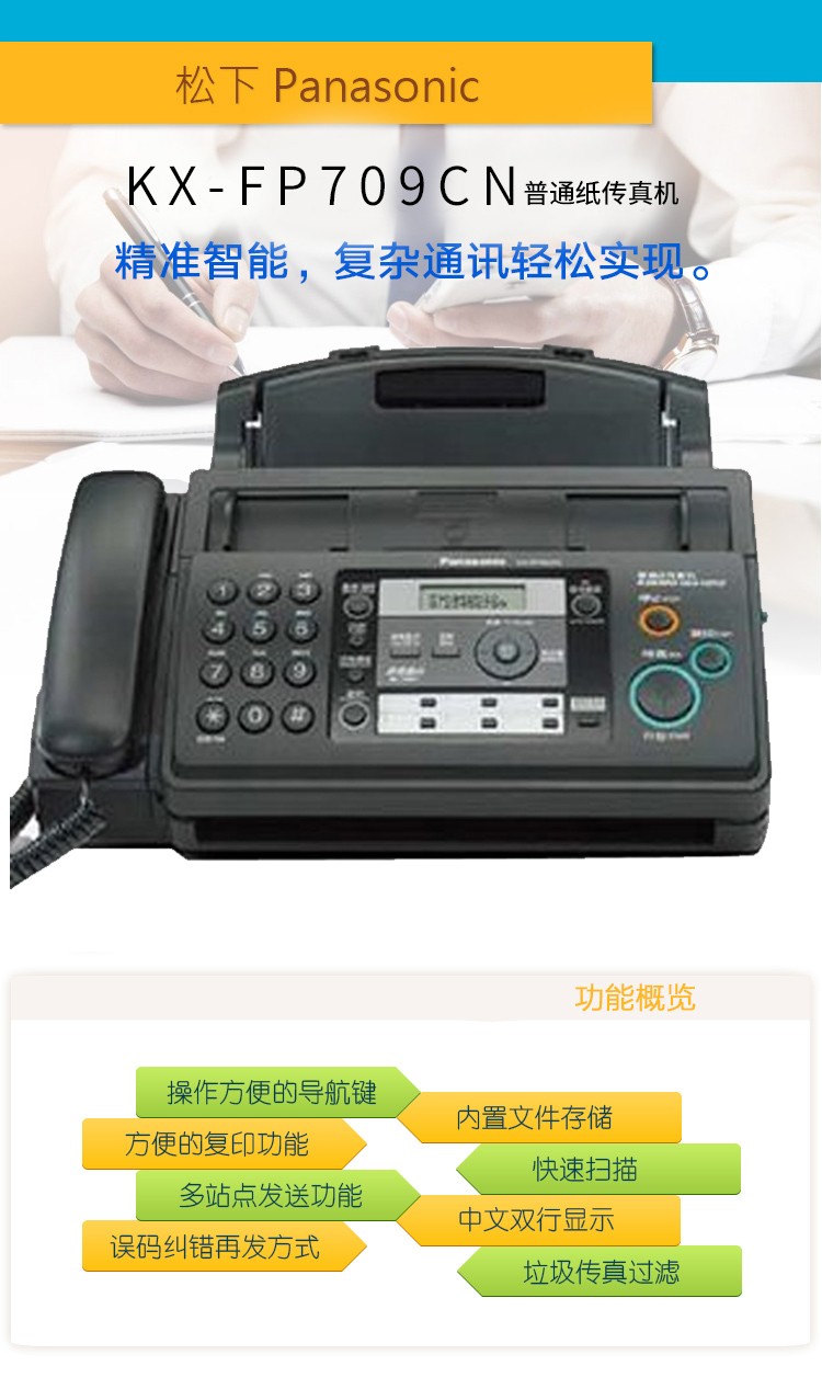 - 商品名称:松下(Panasonic)KX-FP7009CN 普通A4纸传真机复印电话一体机中文显示办公商务家用