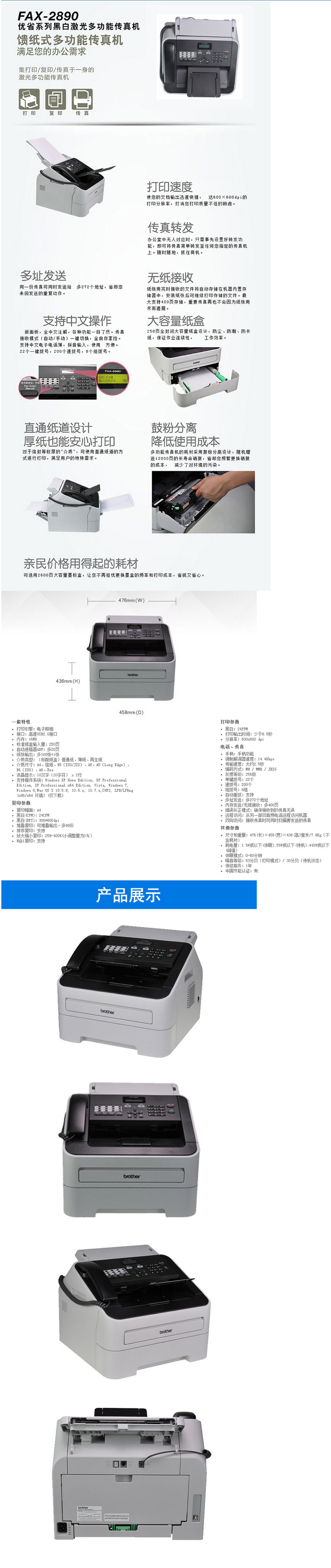 - 商品名称:兄弟(brother) FAX-2890 激光 A4普通纸电话传真机 打印机代替2820 FAX-2890