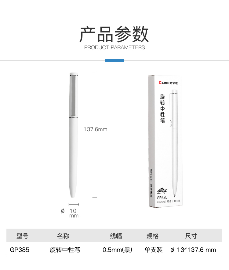 - 商品名称:齐心(Comix) 速干旋转出芯中性笔子弹头签字笔0.5mm水笔磨砂笔杆黑 GP385
