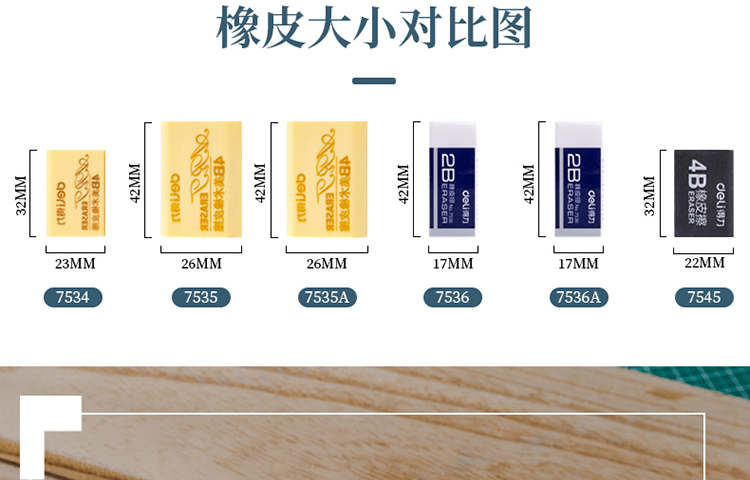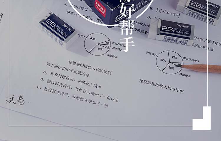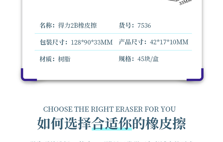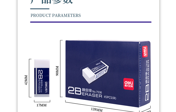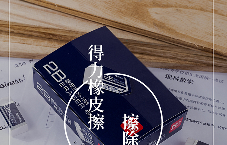 - 商品名称:得力(deli)45块办公考试2B橡皮擦 白色学生文具橡皮 7536