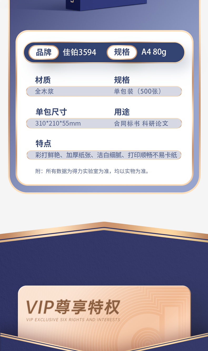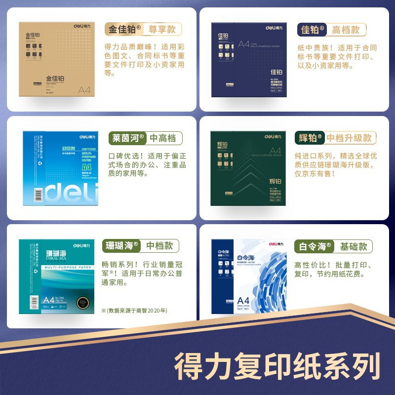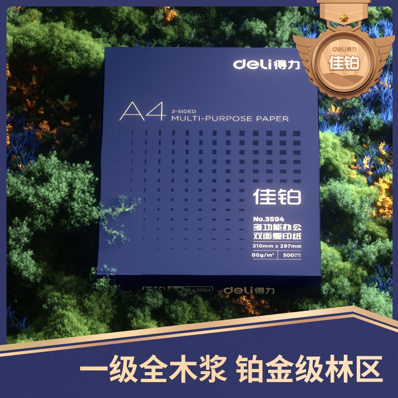 商品名称:得力(deli)佳铂 80g A4 复印纸 高档打印纸 500张1包 单包装