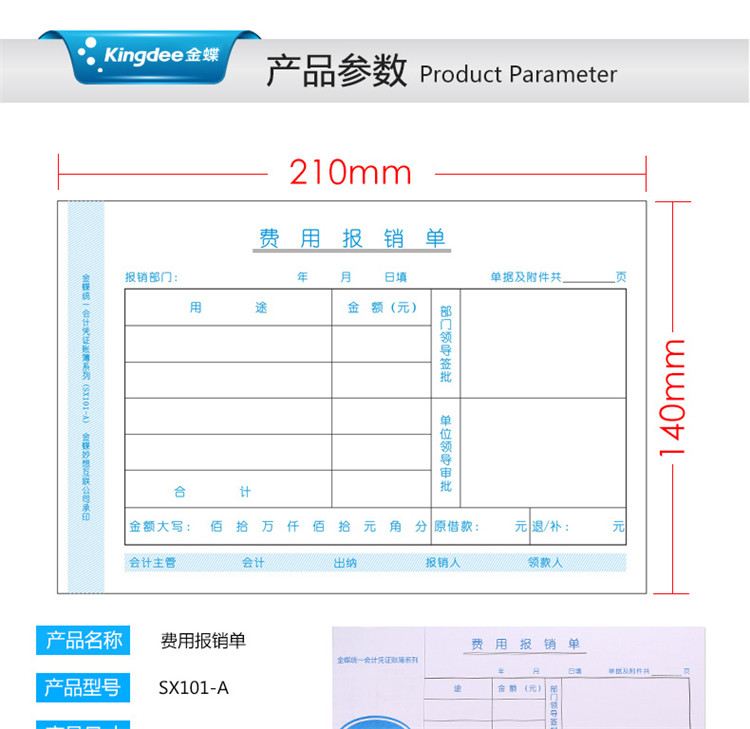- 商品名称:金蝶 kingdee 付款申请单SX101-F通用财务手写单据210*140mm 10本/包