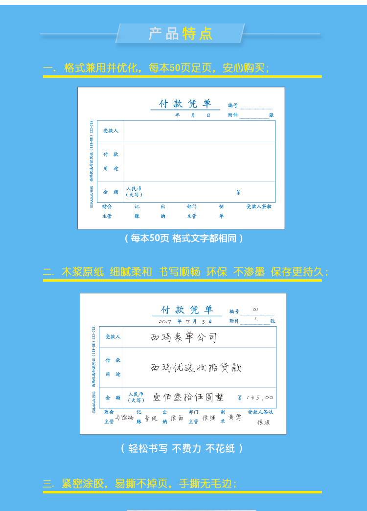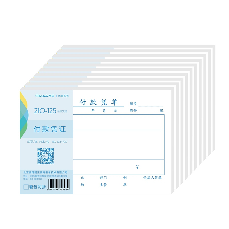 - 商品名称:西玛(SIMAA)122-72S优选付款凭单128*88mm 50页/本 10本装 费用报销粘贴单据会计记账凭证付款审批申请单