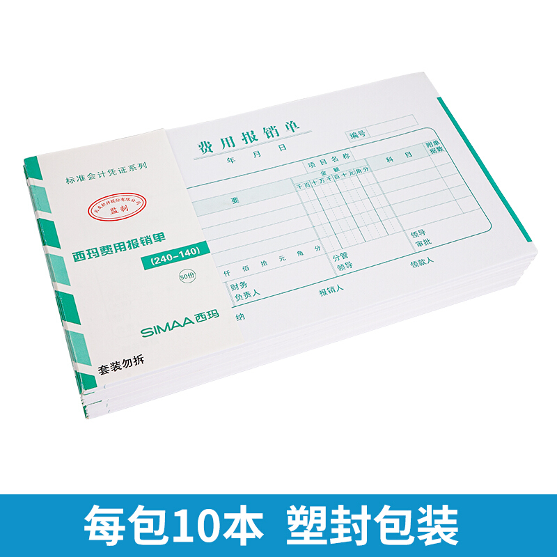 - 商品名称:西玛(SIMAA)费用报销单 240*140mm 50页/本/10本/包 报销凭证粘贴单申请单借款单支出通用财务单据凭证