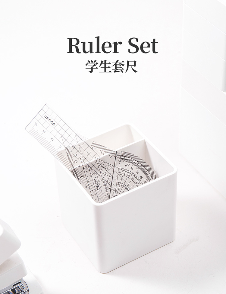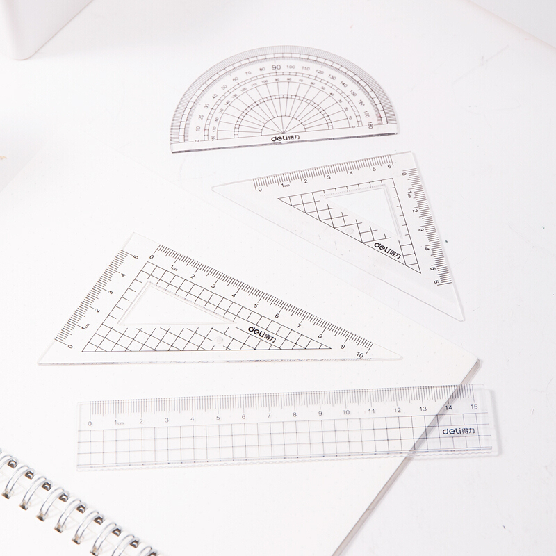 商品名称:得力(deli)学生基础款直尺三角尺量角器绘图组合套尺4件套 72002