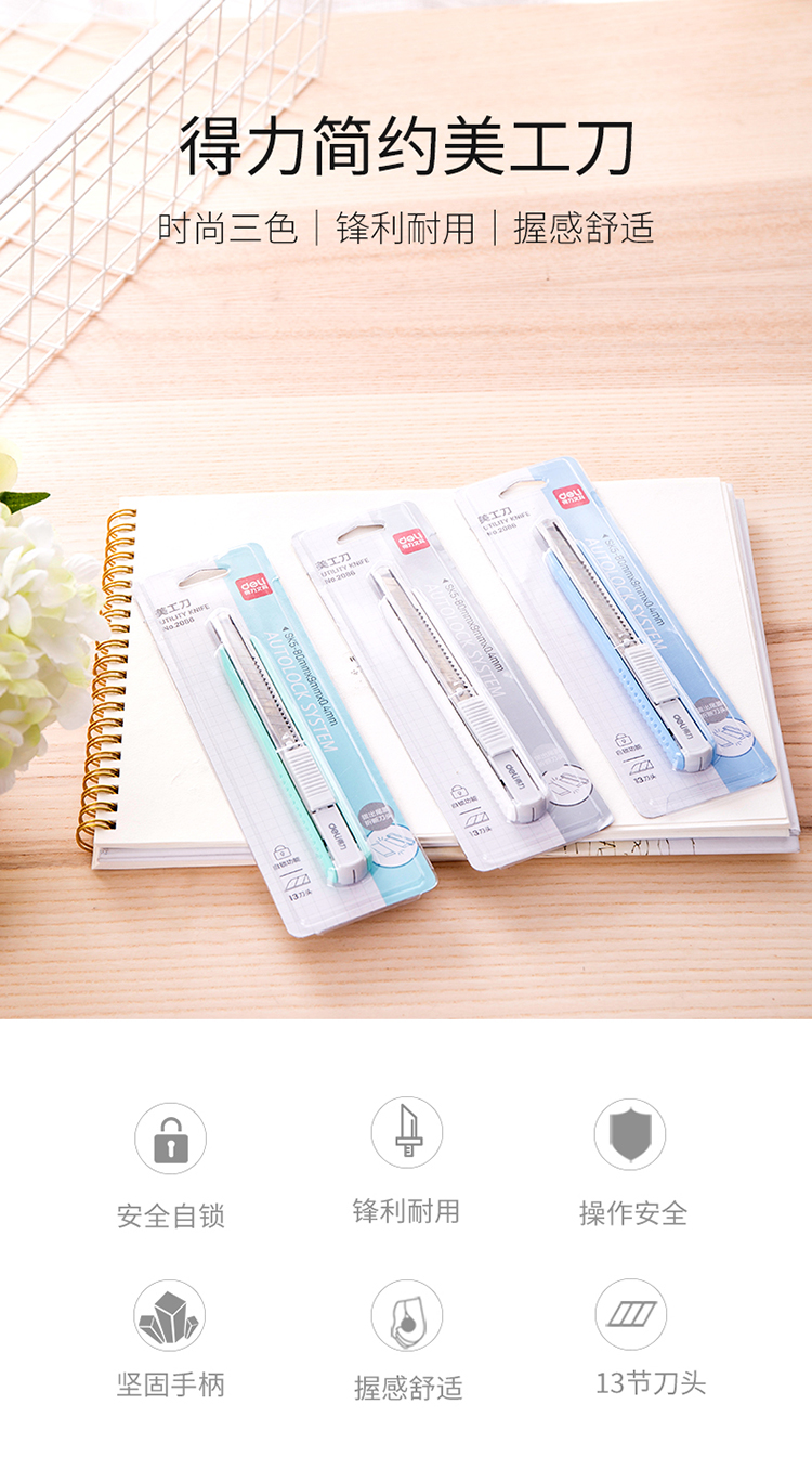 - 商品名称:得力(deli)小号铝合金护套美工刀壁纸刀裁纸刀 办公用品 白色2086