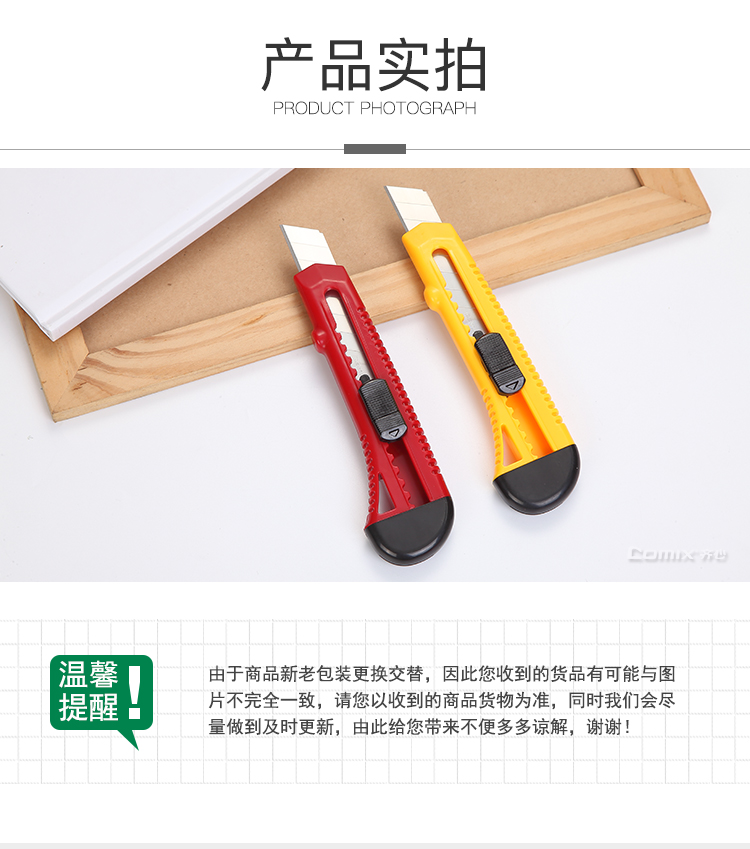 - 商品名称:【大号】齐心(Comix)美工刀/裁纸刀/壁纸刀 手动锁定 大号18mm 红色 办公用品E28