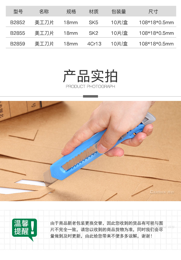 - 商品名称:齐心(Comix)美工刀/裁纸刀/壁纸刀 大号18mm 颜色随机 工具B2809