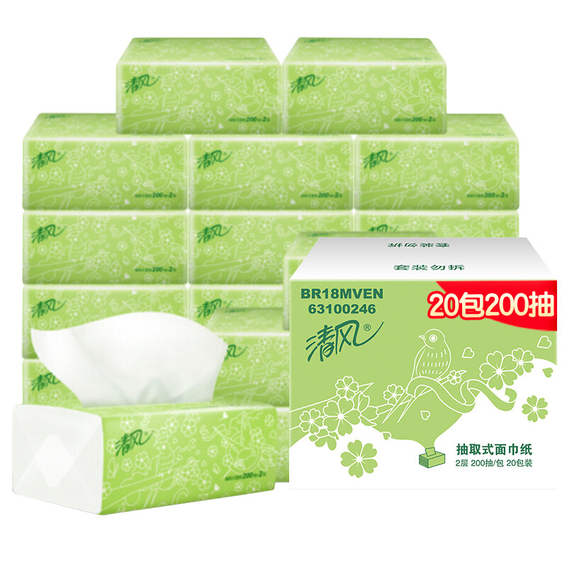 - 商品名称:清风(APP)抽纸 柔韧2层200抽软抽*20包纸巾(新老包装交替发货)(整箱售卖)